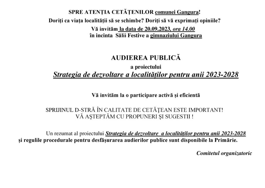 AUDIEREA PUBLICĂ a proiectului „Strategia de dezvoltare a localităților pentru anii 2023-2028”
